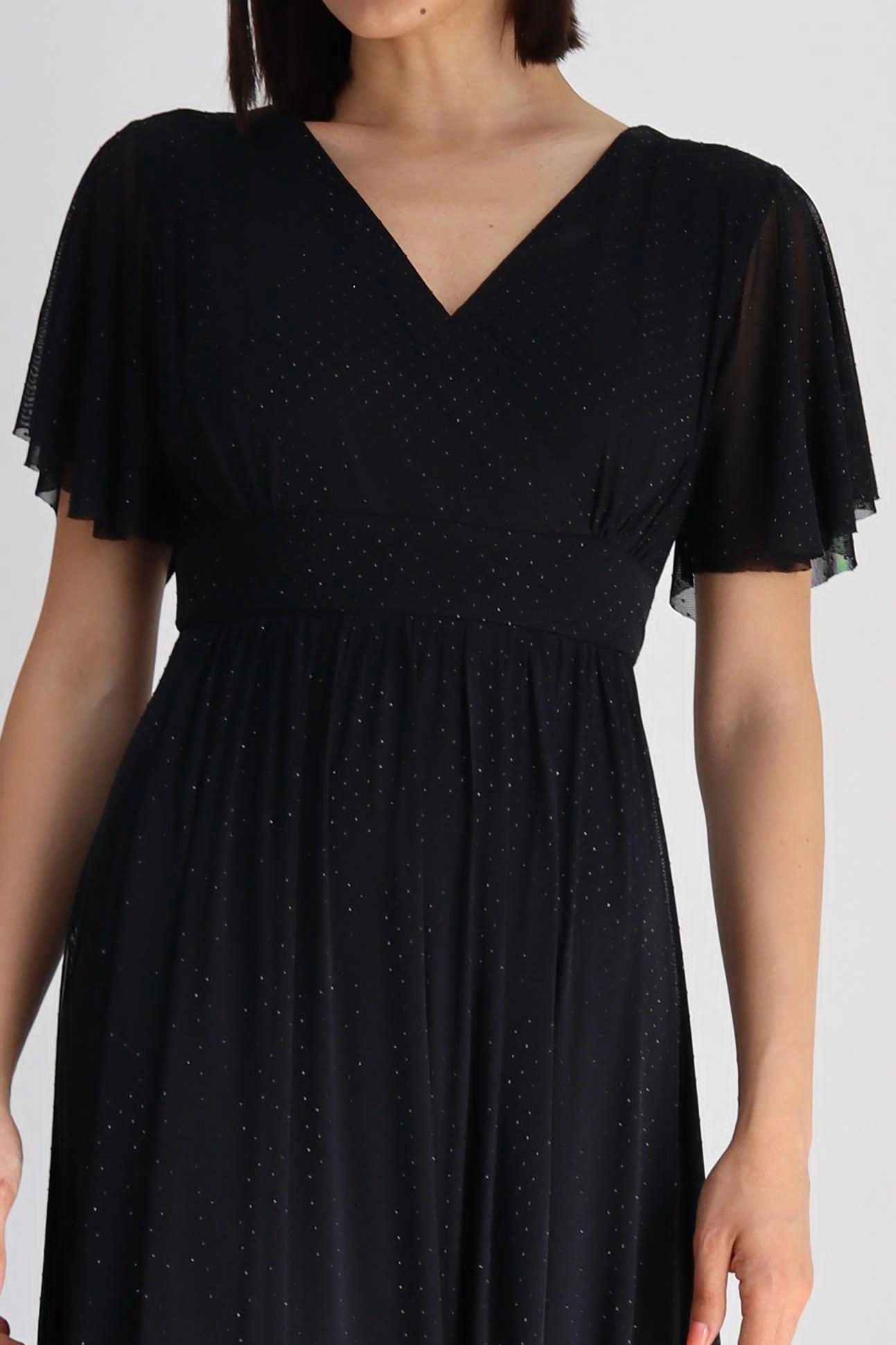 שמלת מקסי מבד שיפון אבנים עם תחתתית בד ליקרה